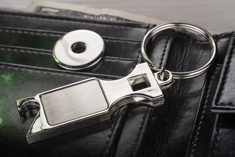 łączący funkcję otwieracza do butelek i żetonu do wózka sklepowego